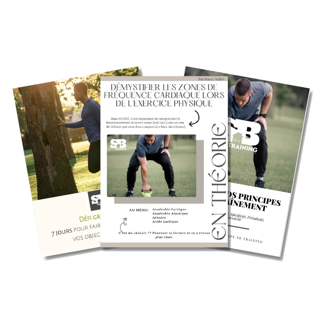 Accède à notre banque de ebook sur l'entraînement ! Nos meilleurs conseils, stratégies et suggestions d'entraînement pour une perte de poids efficace. Tu pourras les télécharger et y avoir accès même après le challenge.