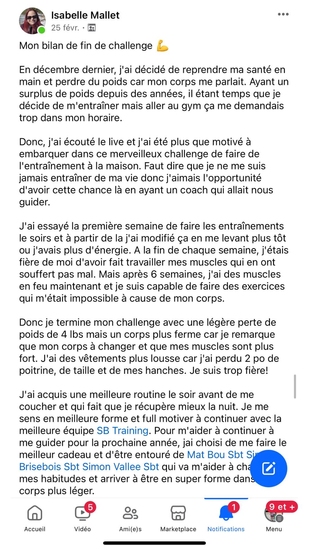 1 groupe Facebook Privé où tu seras en contact avec un entourage de vainqueur et de la motivation au quotidien. Même si ton entourage proche ne te soutient pas dans ton processus de remise en forme, sache que tous les membres du challenge seront là pour toi.