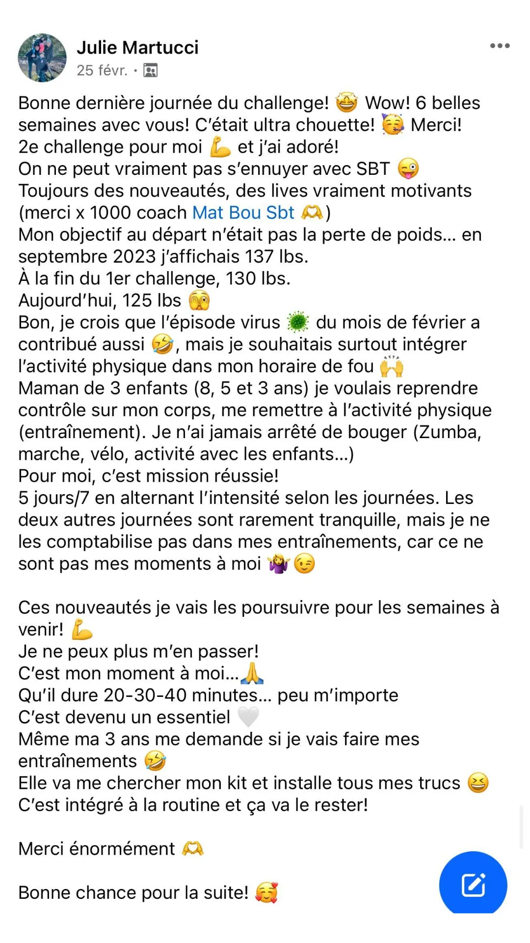 Le challenge a 3 niveaux de difficulté, alors tu peux facilement trouver ton compte selon ta forme physique actuelle. Je suis 100% convaincu que tu peux le faire! Te laisseras-tu la chance d’y croire toi aussi?